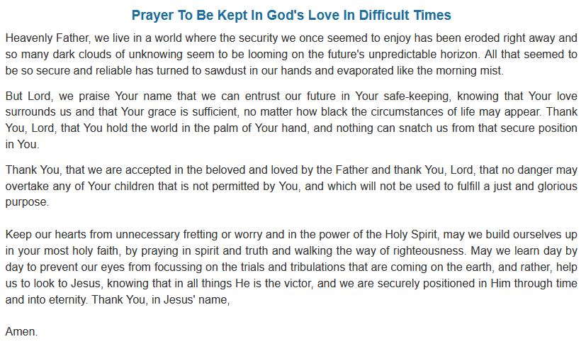 If you or a love one are in need of prayer. please use this link. We will pray for you and your love ones